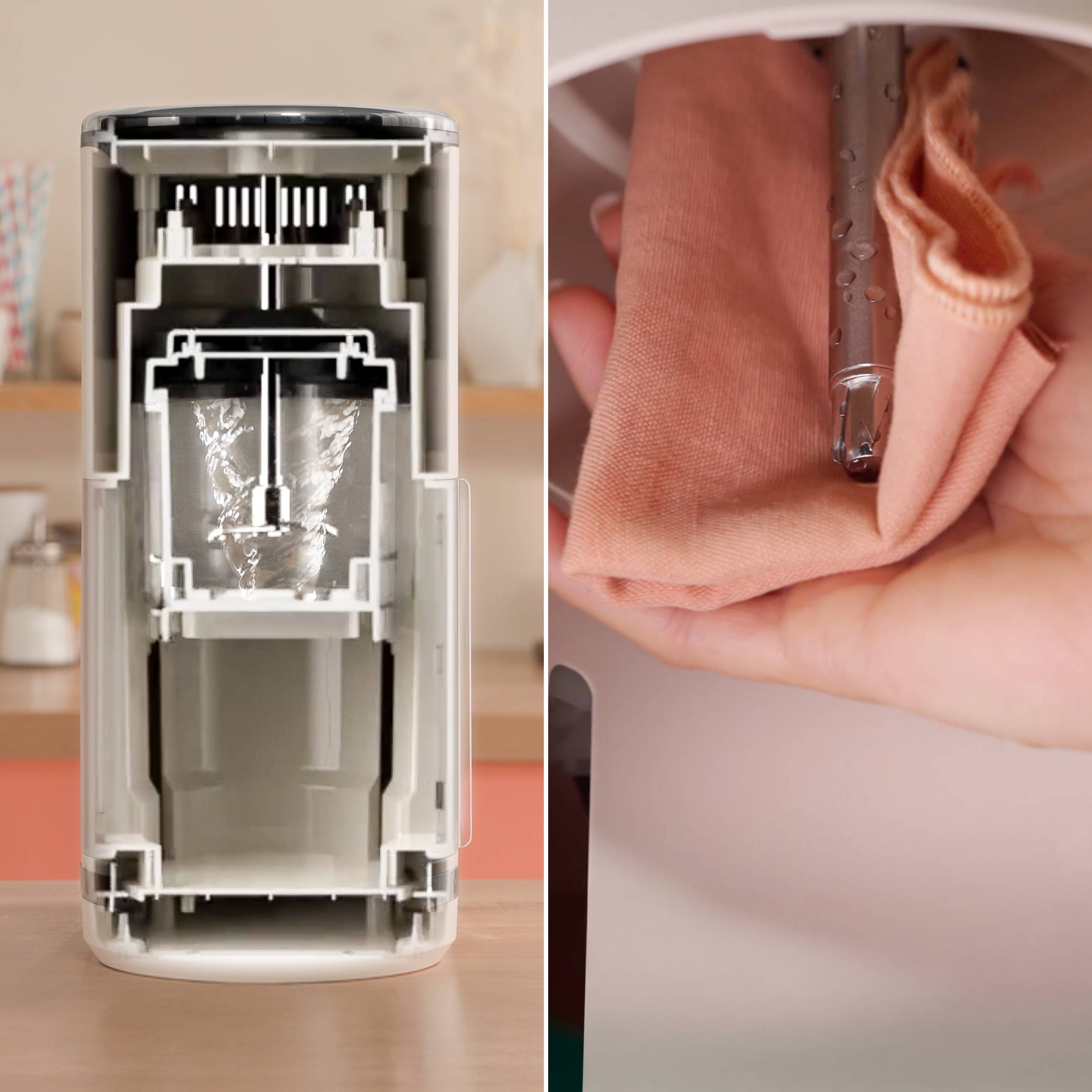 Dimentica le sessioni di pulizia lunghe e noiose. Grazie a un programma dedicato di risciacquo e componenti di recipiente e lama interamente lavabili in lavastoviglie, la pulizia è immediata. Dolci è inoltre concepita per offrire un accesso completo a ogni parte che entra a contatto con il cibo.