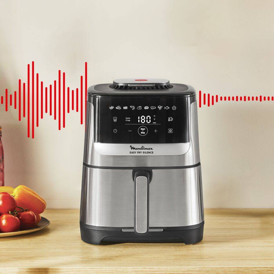 Scopri Moulinex Easy Fry Silence, la friggitrice ad aria più silenziosa*, studiata per risultati impeccabili preparati con un livello sonoro molto ridotto. Scopri una cucina senza stress con la Silent Technology di Moulinex, oltre a tante altre funzioni per la convenienza ottimale. La parte anteriore amovibile consente di pulire e riporre facilmente il prodotto, con un intuitivo touch screen e molto altro. Il tutto è completato da una frittura ad aria che richiede il 70% di energia in meno rispetto ai forni tradizionali.*** *In modalità frittura ad aria per cucinare le patatine fritte, test effettuati secondo lo standard IEC60704 nel 2024 sulle friggitrici ad aria più vendute sul mercato. **Test condotti nel 2024 su patatine fritte surgelate, in modalità Extra-Crisp.***rispetto al forno tradizionale in classe energetica A. Test condotti nel 2024 su patatine fritte surgelate.