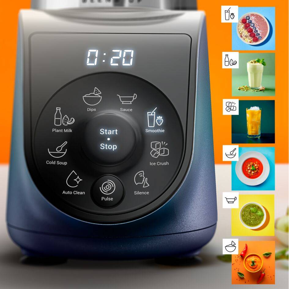 Potente, facile e compatto, Blend Up è tutto ciò che ami in un solo elettrodomestico: un frullatore piccolo ma robusto che vanta una concentrazione inedita di tecnologia e un design facile da pulire. Gusta frullati sani e bevande vegetali, ma anche deliziose salse, zuppe, intingoli e molto altro. Frulla le bevande direttamente in bottiglie da viaggio da portare ovunque. È disponibile anche una modalità silenziosa dedicata per un utilizzo senza rumore mattina e sera!