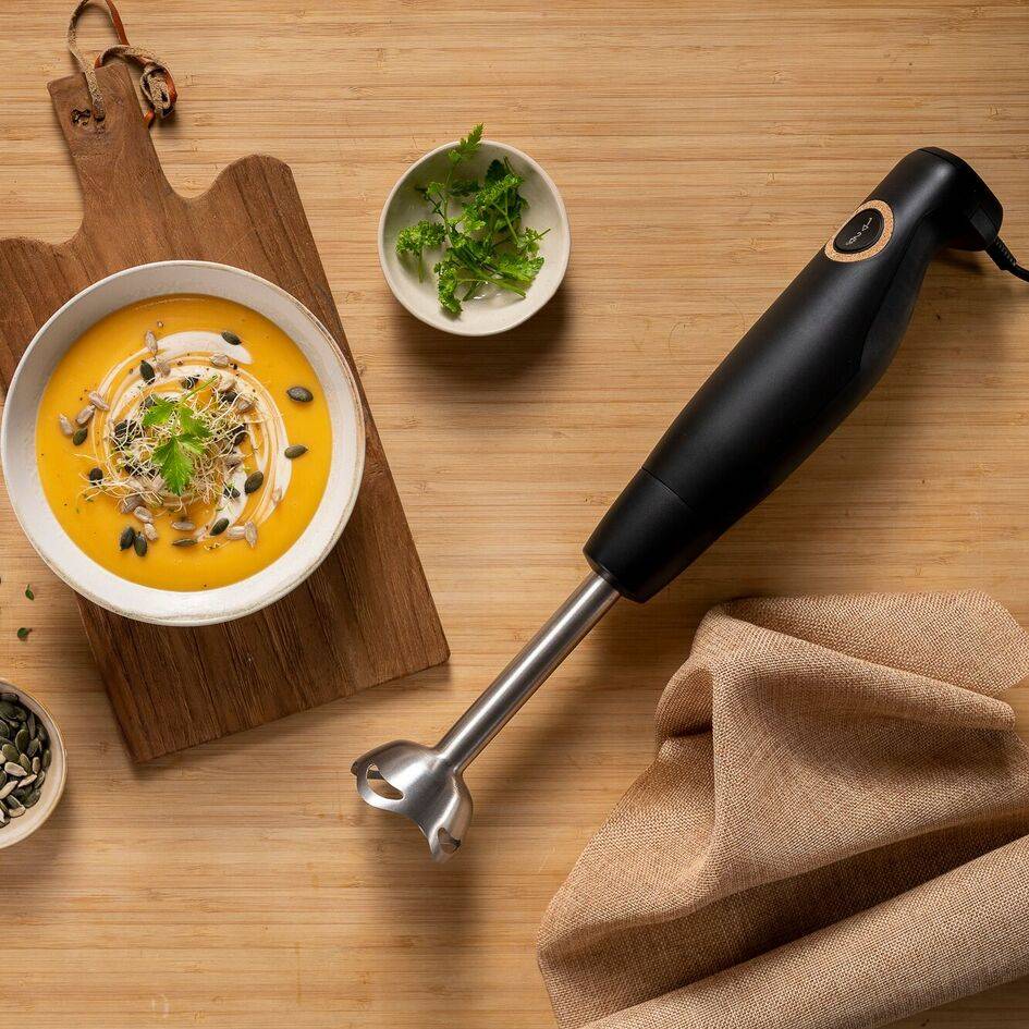 Con il mixer a immersione Eco Respect, potrai gustare deliziose zuppe, purè, salse, pesto fatti in casa e molto altro! Il mixer a immersione dal design eco garantisce ogni giorno prestazioni perfette con una varietà di funzionalità comode per l'uso quotidiano. Le esclusive lame Powelix assicurano un alto livello di durabilità e risultati più rapidi del 30%*. Il grilletto a due velocità altamente intuitivo e facile da usare è ideale per qualsiasi consistenza, con un motore potente da 600 W per una miscelazione ottimale in pochissimo tempo. Scopri il mixer a immersione perfetto, con piede antischizzi per non sporcare la cucina, componenti amovibili lavabili in lavastoviglie e un bicchiere da 800 ml per dare sfogo alla tua creatività culinaria. Imparare nuove ricette non è mai stato così facile!