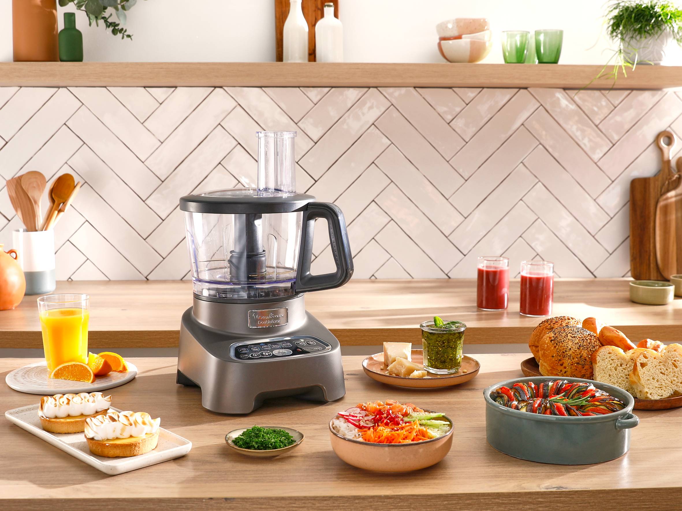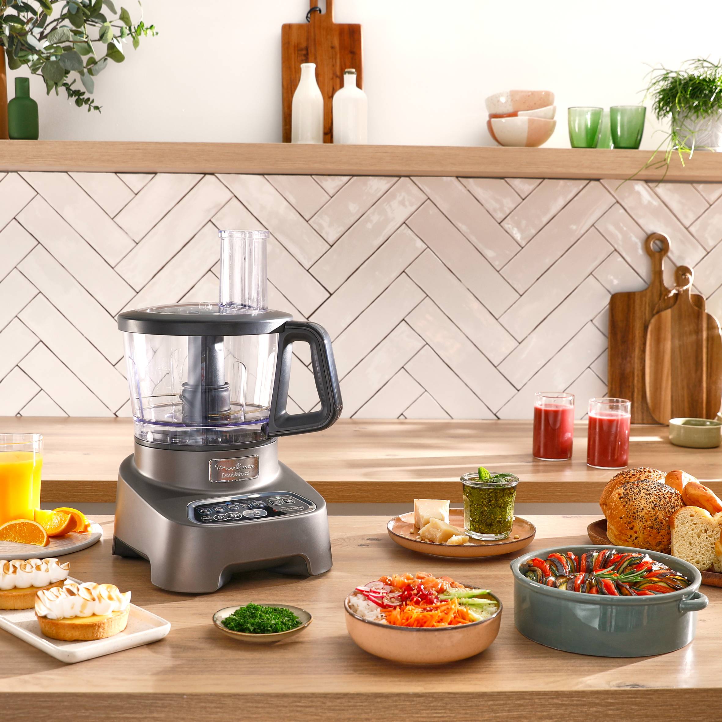 Il robot da cucina multifunzione DoubleForce di Moulinex mette nelle tue mani il meglio di entrambi i mondi ed è stato progettato per essere il tuo alleato perfetto in cucina. Due diverse uscite del motore danno la priorità a velocità o potenza in base alle tue esigenze, per un robot da cucina multifunzione dalle alte prestazioni e un frullatore eccezionale per smoothie e frullati, tutto in un solo elettrodomestico. 10 accessori versatili, tra cui un disco per emulsionare, tritatutto, impastatrice e molto altro: un'infinità di possibilità a portata di mano. A completare il robot da cucina multifunzione perfetto con frullatore, una serie straordinaria di funzionalità: 6 combinazioni di velocità con un controllo perfetto grazie a un'interfaccia moderna e intuitiva, il sistema di sicurezza Easylock per la massima tranquillità, lame durature con rivestimento in titanio Powelix, un motore potente e resistente da 1000 W, robot da cucina da 3 L e frullatore da 2 L per piccole e grandi quantità e molto altro. Il tutto racchiuso in un design elegante e resistente che aggiunge un tocco di stile a ogni cucina.