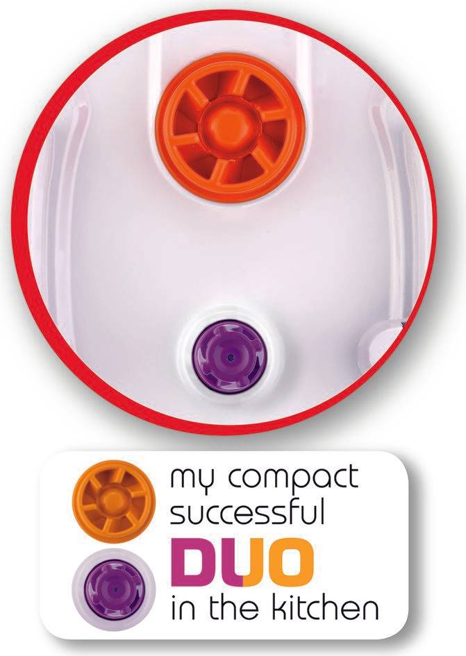 Con il robot da cucina multifunzione DoubleForce Compact, non devi scegliere tra velocità e forza! Grazie a due diverse potenze di motore, fornisce il meglio di entrambi i mondi. Dotato di potenza da 800 W, una ciotola principale da 2,2 L (capacità utile 0,8 L) e un vaso frullatore da 1,25 L, oltre a un totale di sei opzioni di velocità, il DoubleForce Compact gestisce tutti i tipi di preparazioni, dalle più piccole alle più grandi, pur occupando uno spazio molto limitato sul banco di lavoro. Caratterizzato da una completa serie di accessori, DoubleForce Compact è il robot da cucina multifunzione tutto in uno per grattugiare, affettare, sminuzzare, montare, impastare e tanto altro. Contenuto ma potente, DoubleForce Compact è il migliore aiutante in cucina!
