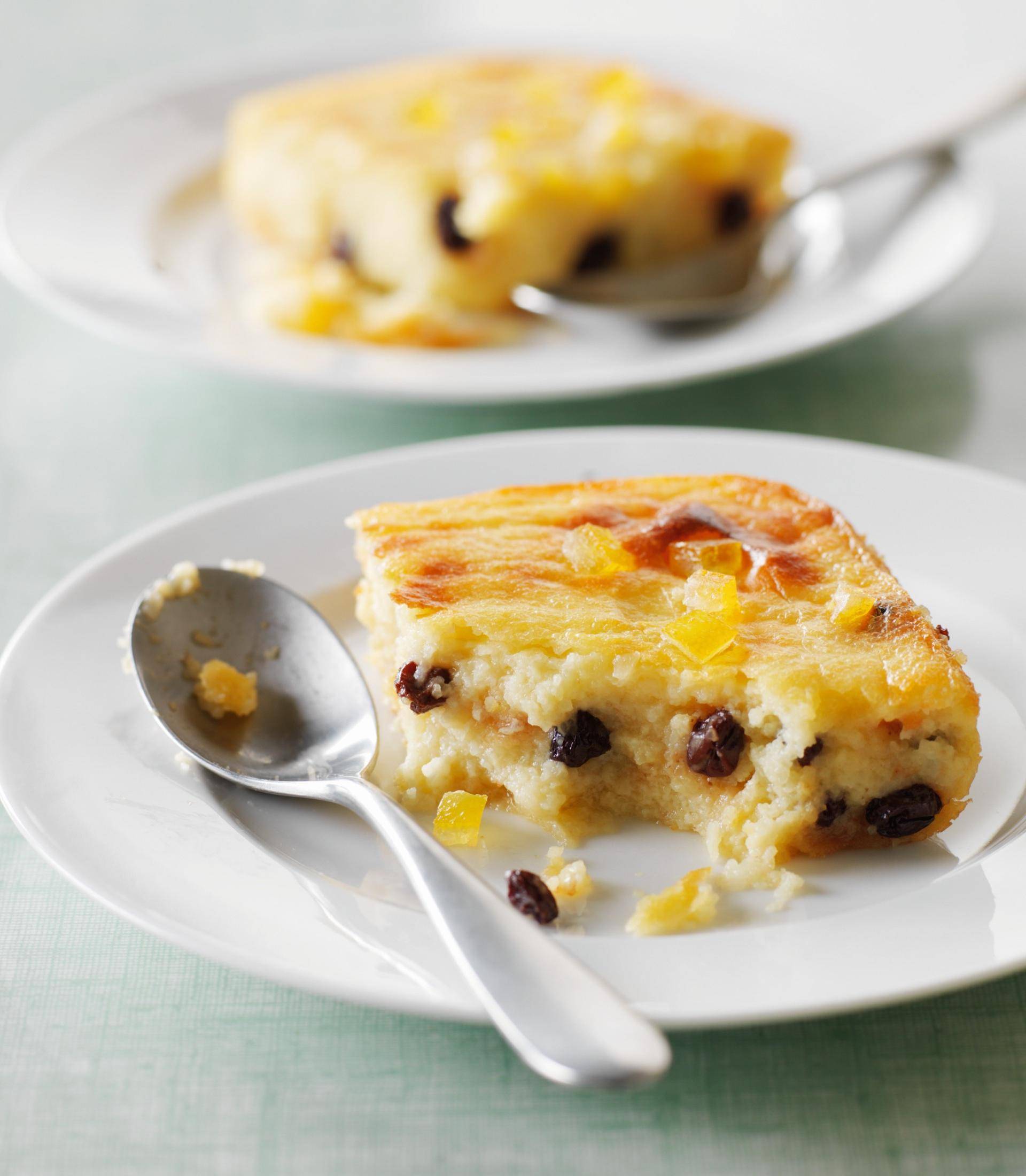 Versare la miscela sul semolino, aggiungere l’uvetta e mescolare con una spatola. Versare l’impasto in una tortiera alta e cuocere per 30-35 minuti. Servire caldo o freddo.
