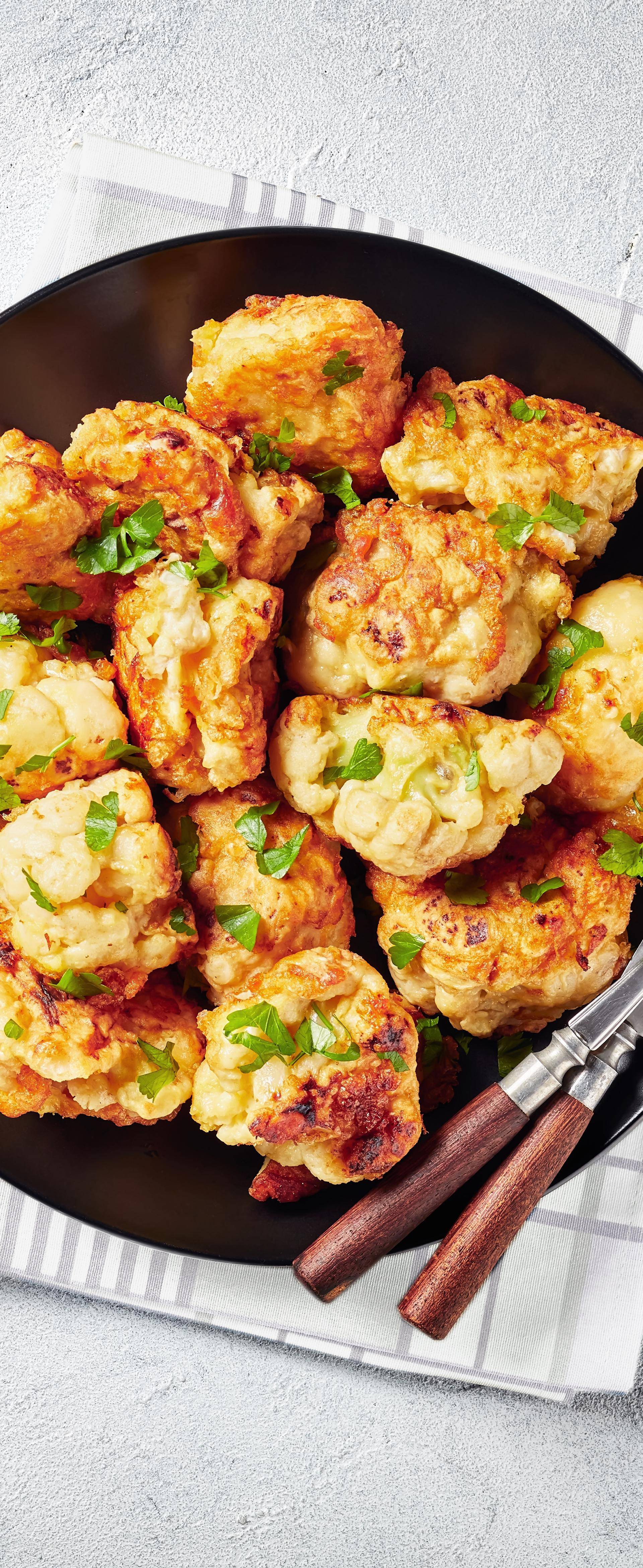 Aprire la maniglia con entrambe le mani e trasferire il cavolfiore in un piatto da portata. Guarnire con prezzemolo fresco tritato e irrorare con succo di limone.