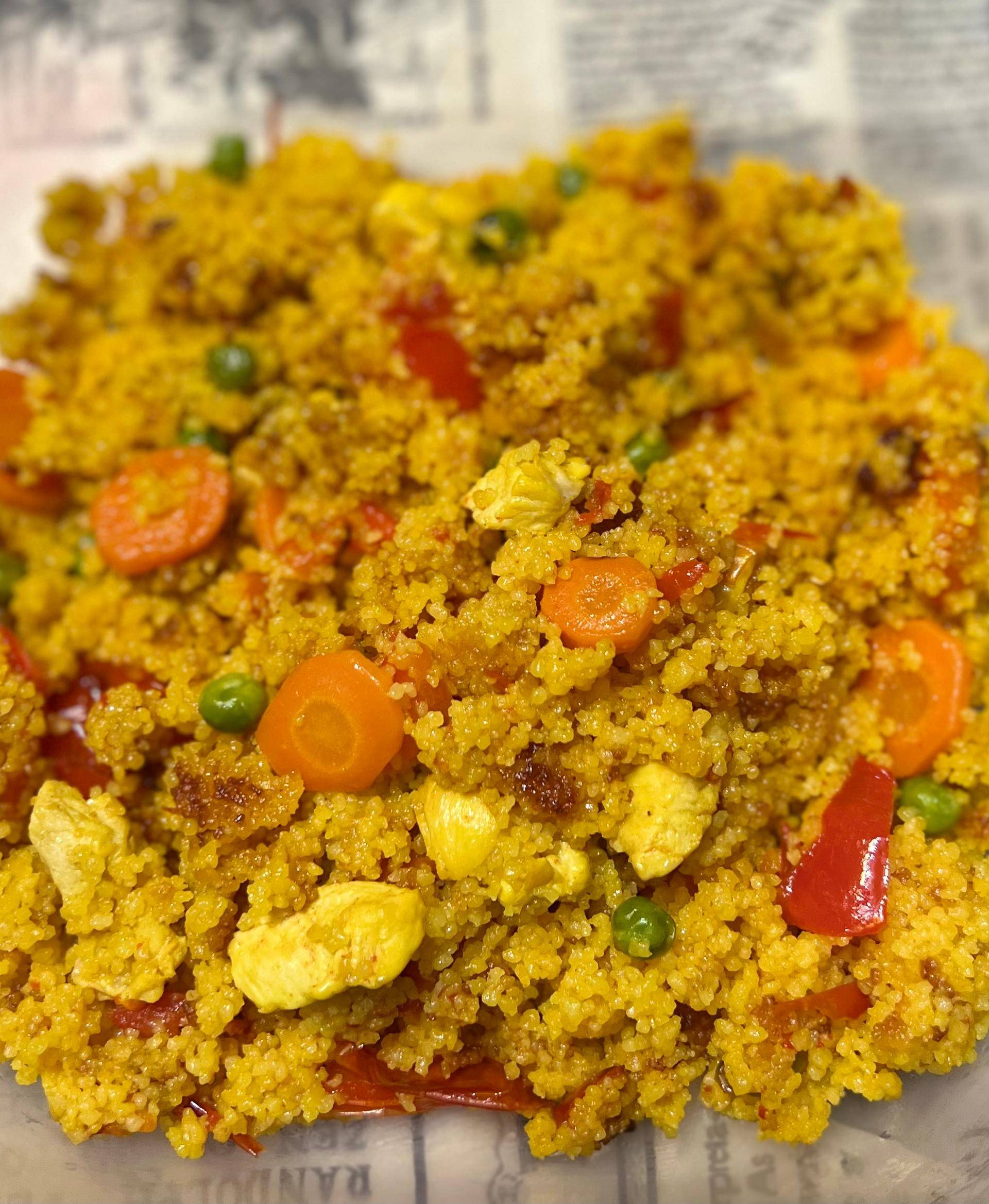 Taglia a dadini il pollo e L aglio e metti in pentola per rosolatura