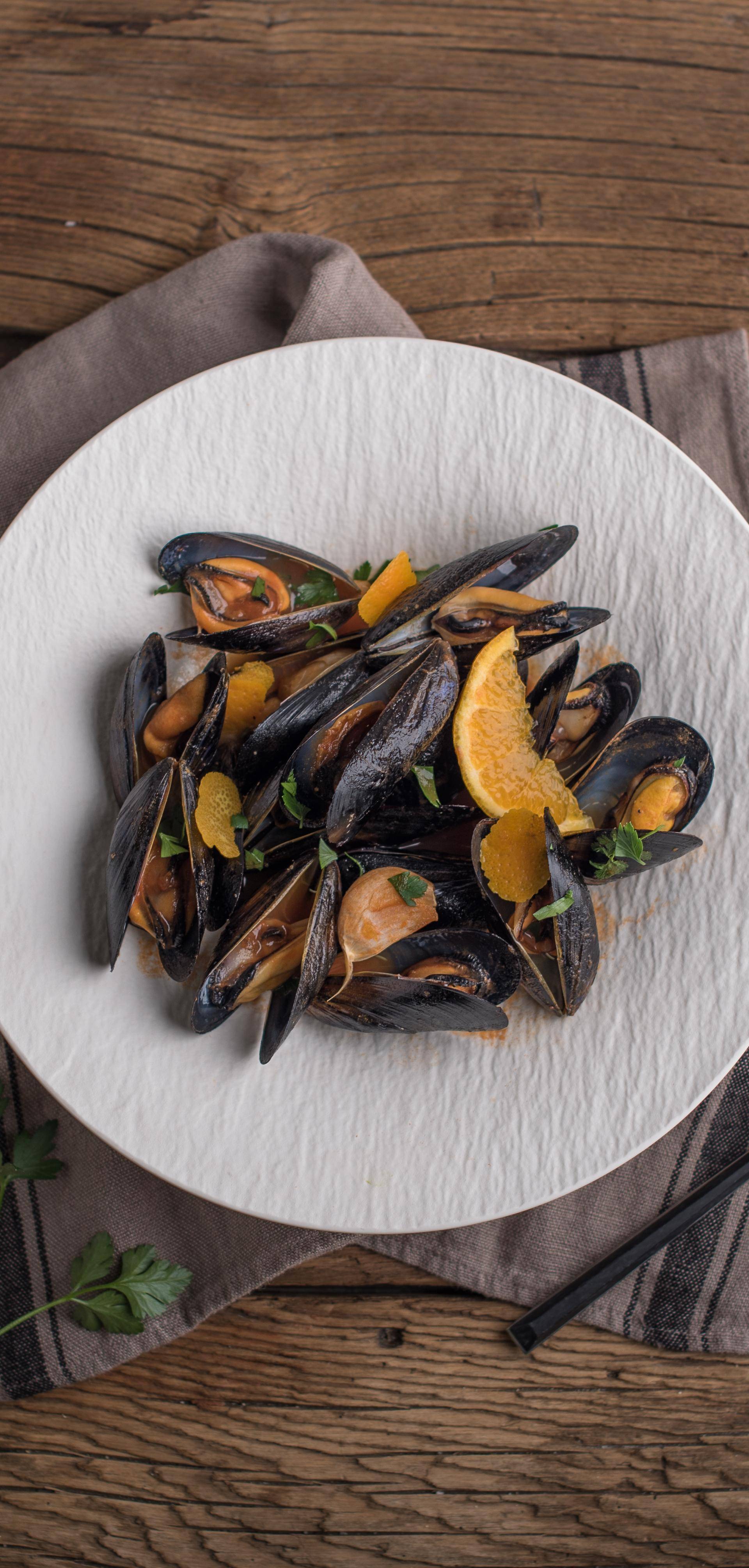 Servite le cozze in 4 piatti fondi e nappate con la salsa.