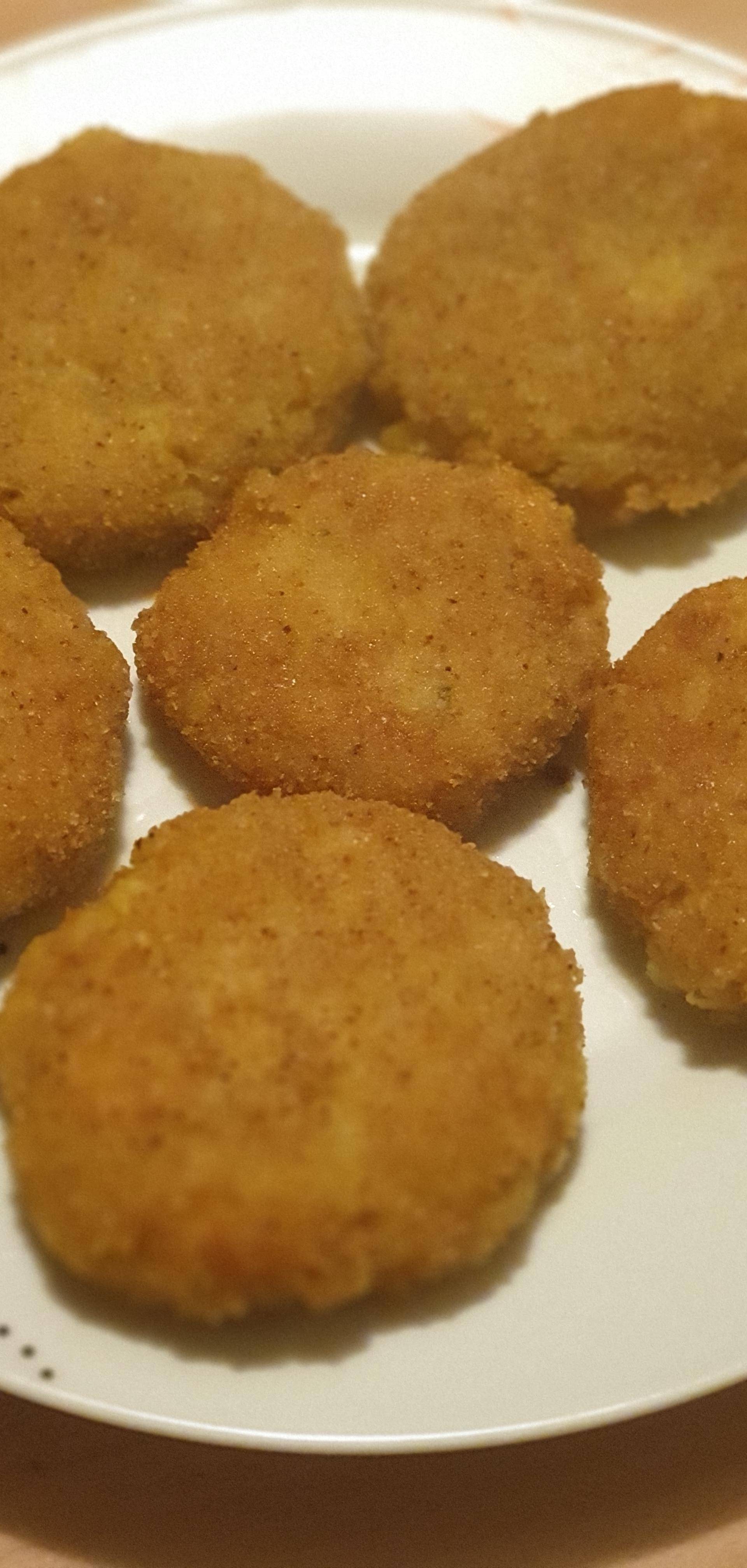 Impastare le patate, tonno, amido di mais, prezzemolo, il tuorlo dell'uovo e un pizzico di sale fino