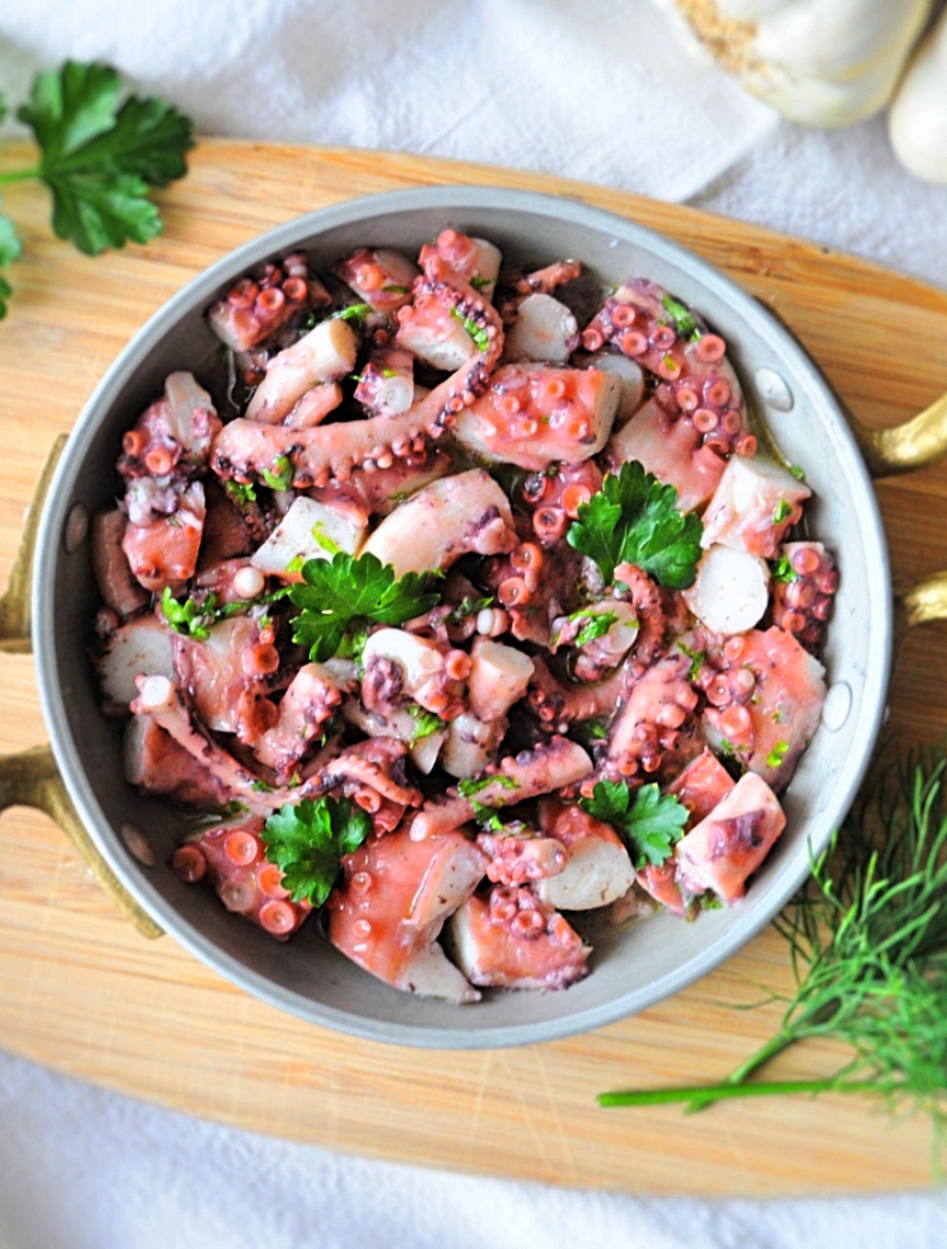 Spremere il limone, tritare il prezzemolo e l'aglio