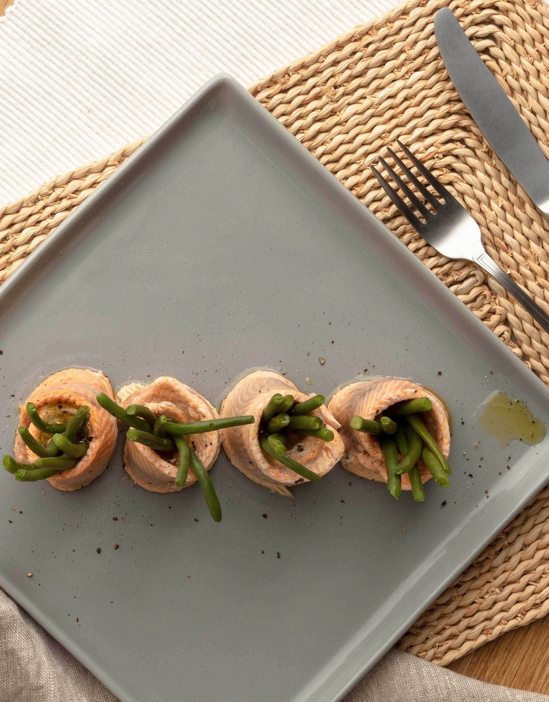 Aggiungere il pesce e avviare il programma slowcook P3. Mentre la lama gira, versare dal foro del coperchio lo spumante e il sale. Chiudere il coperchio e premere "Start".