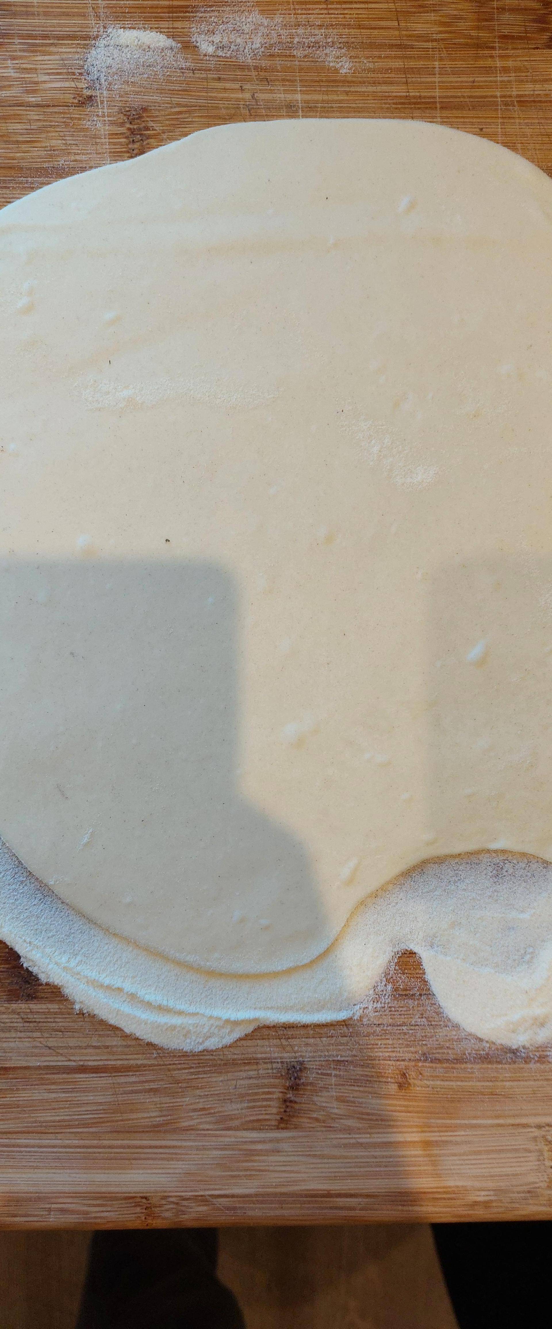 Stendere l’impasto ottenuto dando una forma rettangolare alla pasta e ripiegarla in tre strati, sovrapponendoli