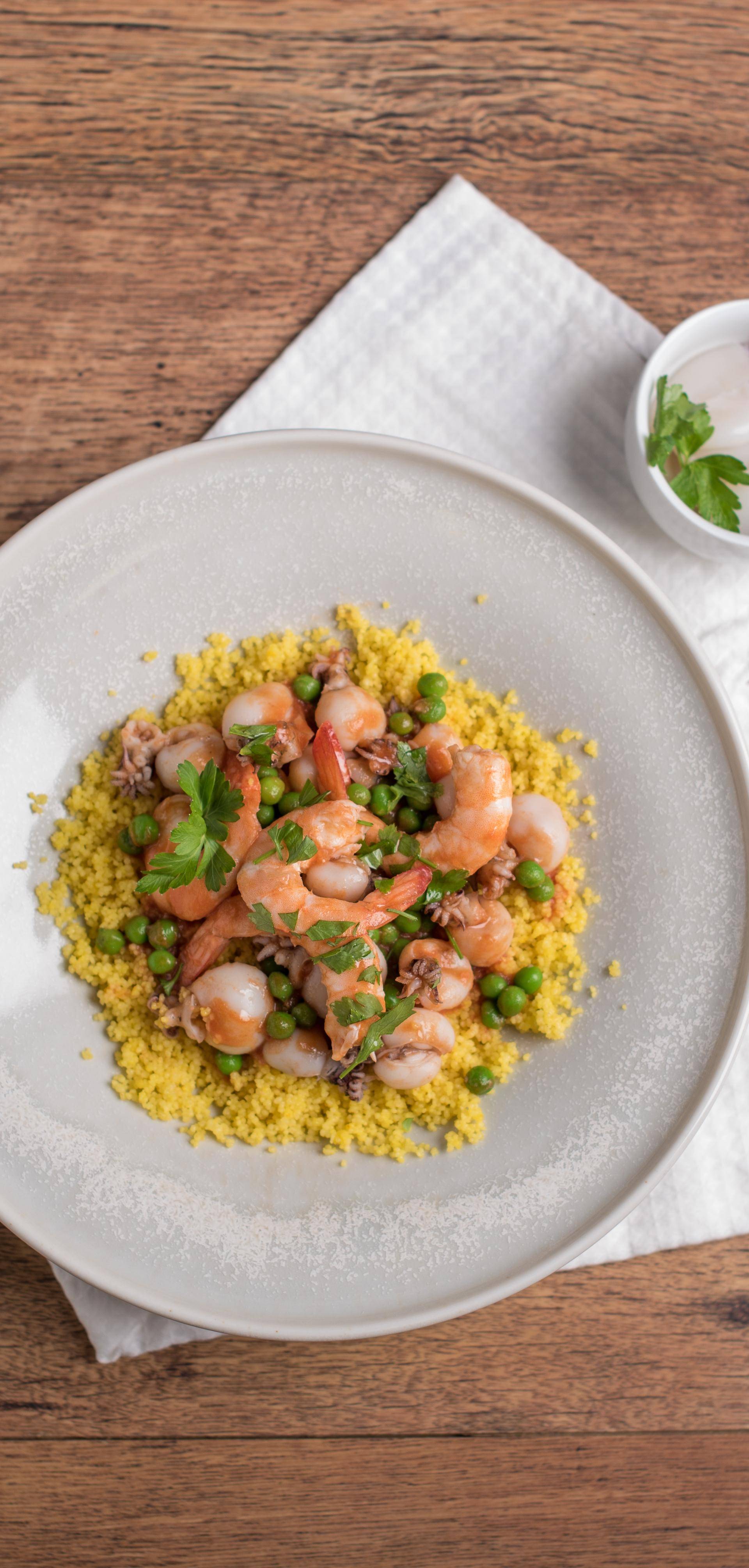 Inserire i piselli, le olive, l'interno dei pomodori scavati, l'olio, il sale e il cumino
