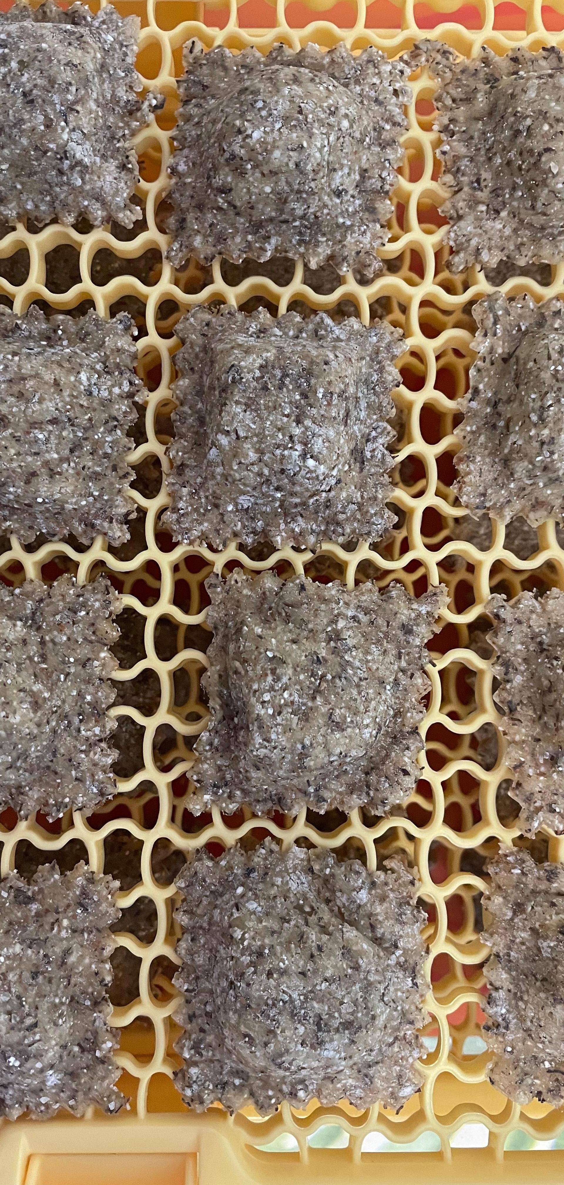 Lasciar raffreddare il ripieno, tirare la pasta e procedere alla farcitura dei ravioli.
