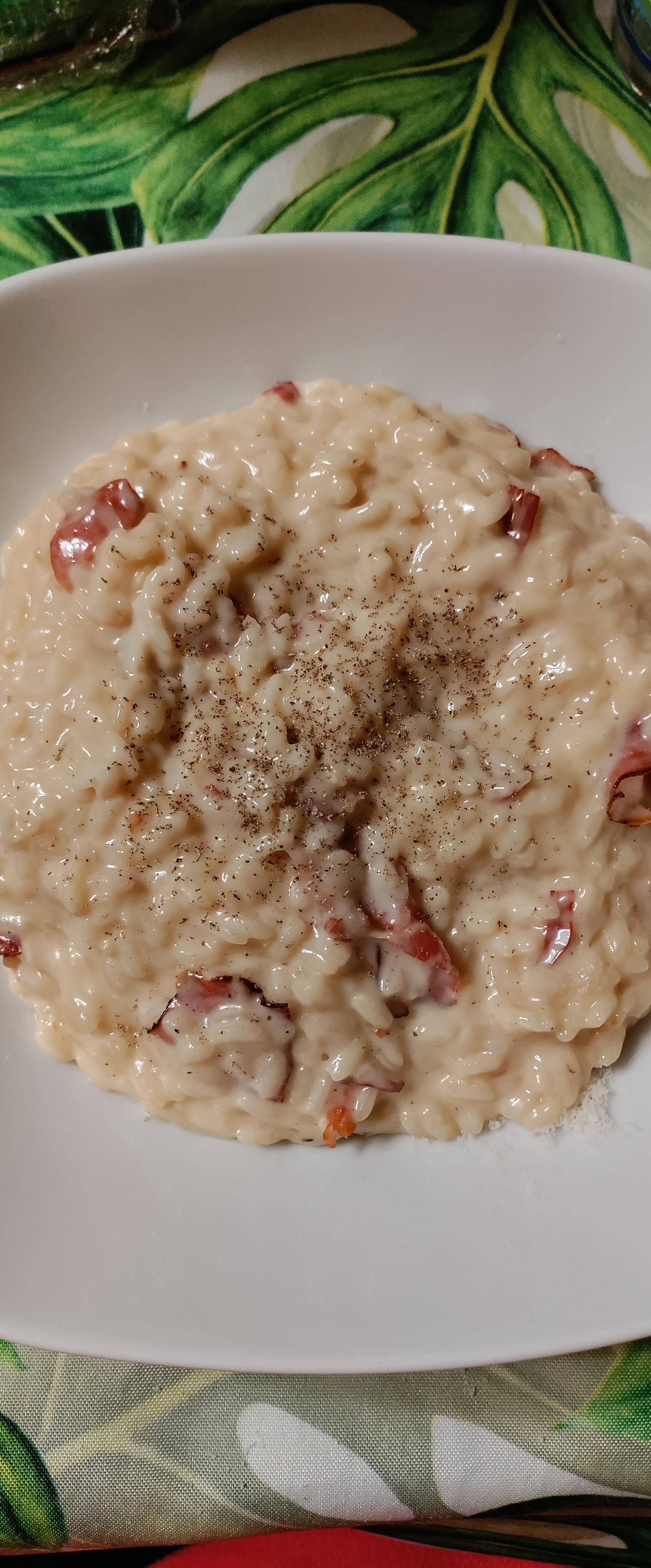 Aggiungere lo Speck a listarelle e i Pomodorini.