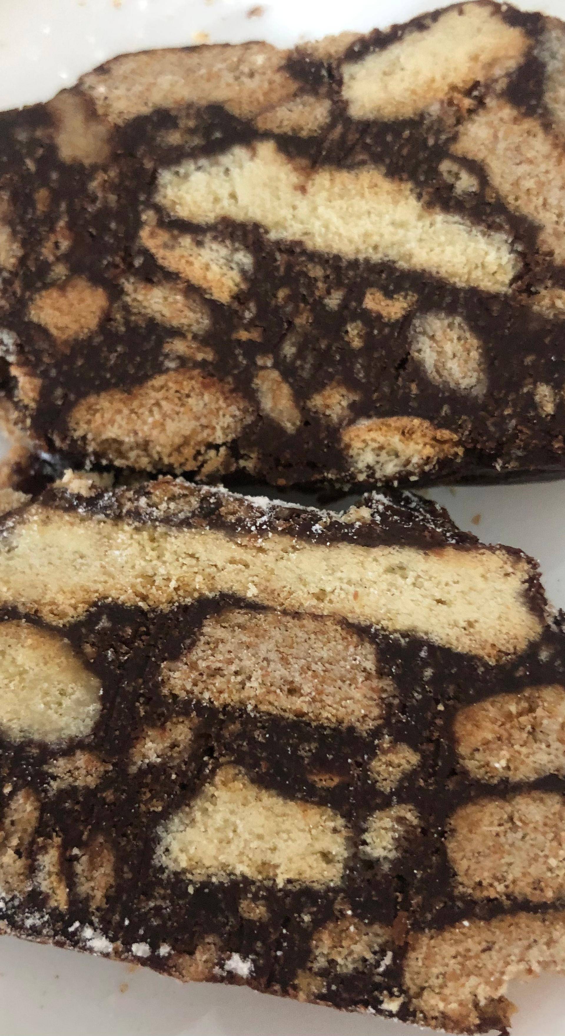 Estrarre il composto dall’apprecchio e poggiarlo su un goglio di stagnola ricoperto da zucchero a velo. Avvolgere e dare la forma del salame. Richiudere per bene avvolgendo la stagnola.