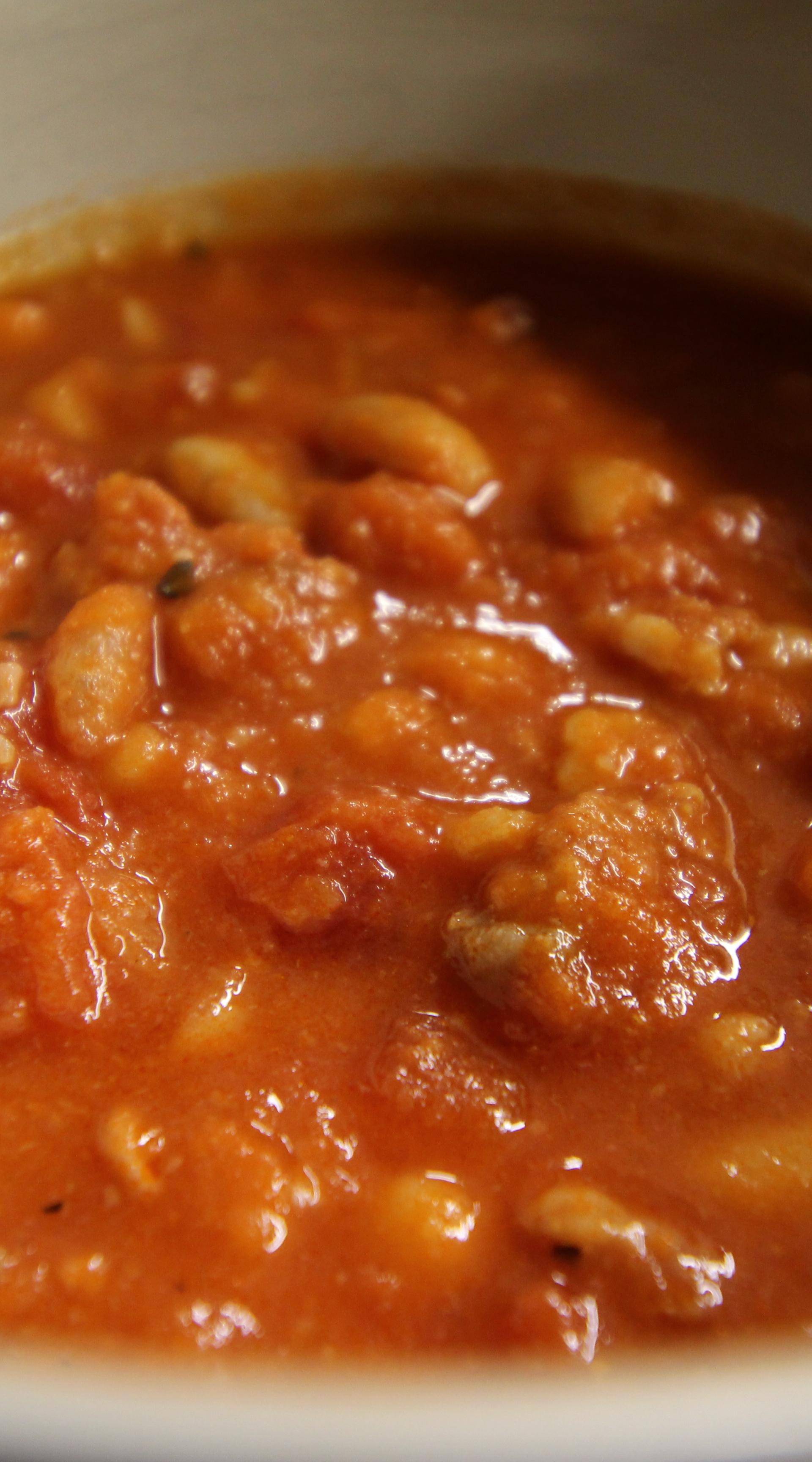 Aggiungere la passata di pomodoro, il timo, lo zucchero e i fagioli nell’accessorio forno. Condire con sale e pepe e mescolare.