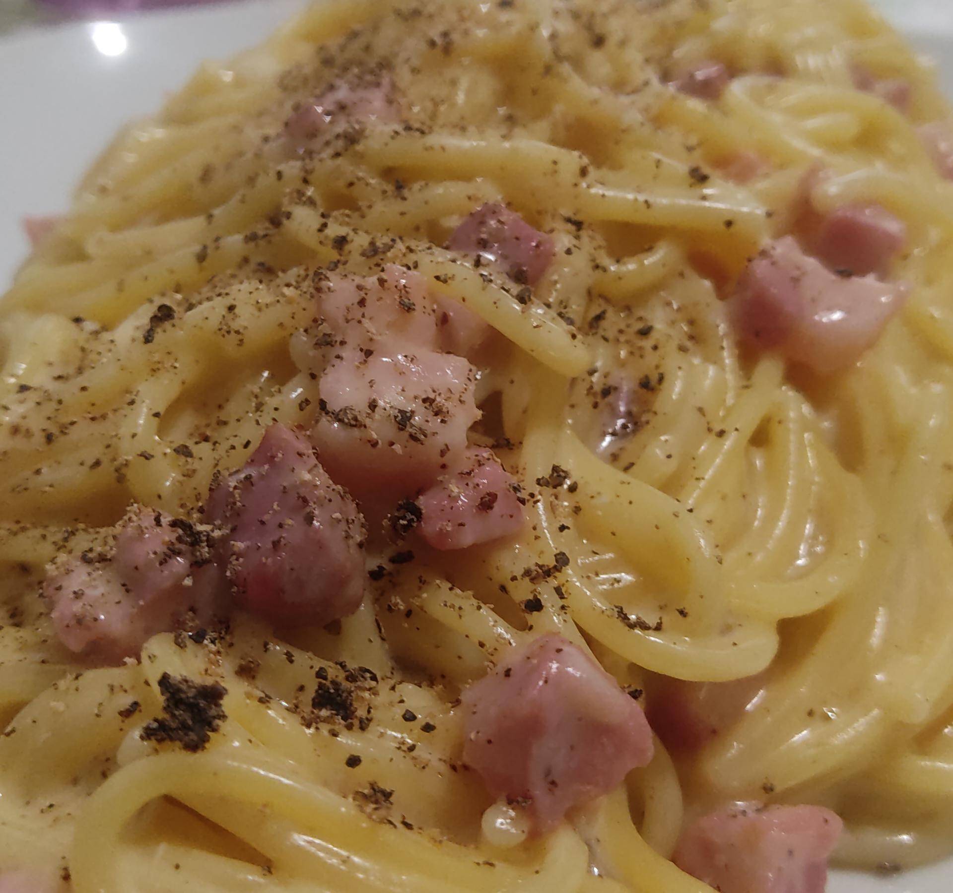 Durante la cottura sbattere le uova aggiungere il pepe ed il formaggio oltre ad un cucchiaio di acqua. A fine cottura direttamente nel cuckeo mescolare gli spaghetti con l'acqua ricca di amido rimasta assieme alle uova e aggiungere la pancetta. Si creerà una bella crema, a piacimento aggiungere uno o due cucchiai di acqua. Impiattate con una grattata di pepe fresco. Ovviamente per la ricetta originale usare guanciale e pecorino romano.