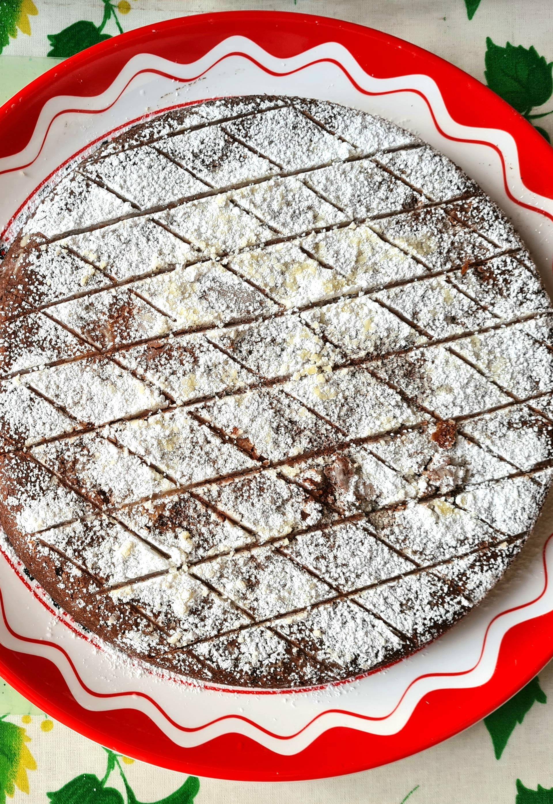 Lasciar raffreddare il dolce per un'ora. Rovesciare su una tortiera e spolverizzare con zucchero a velo.