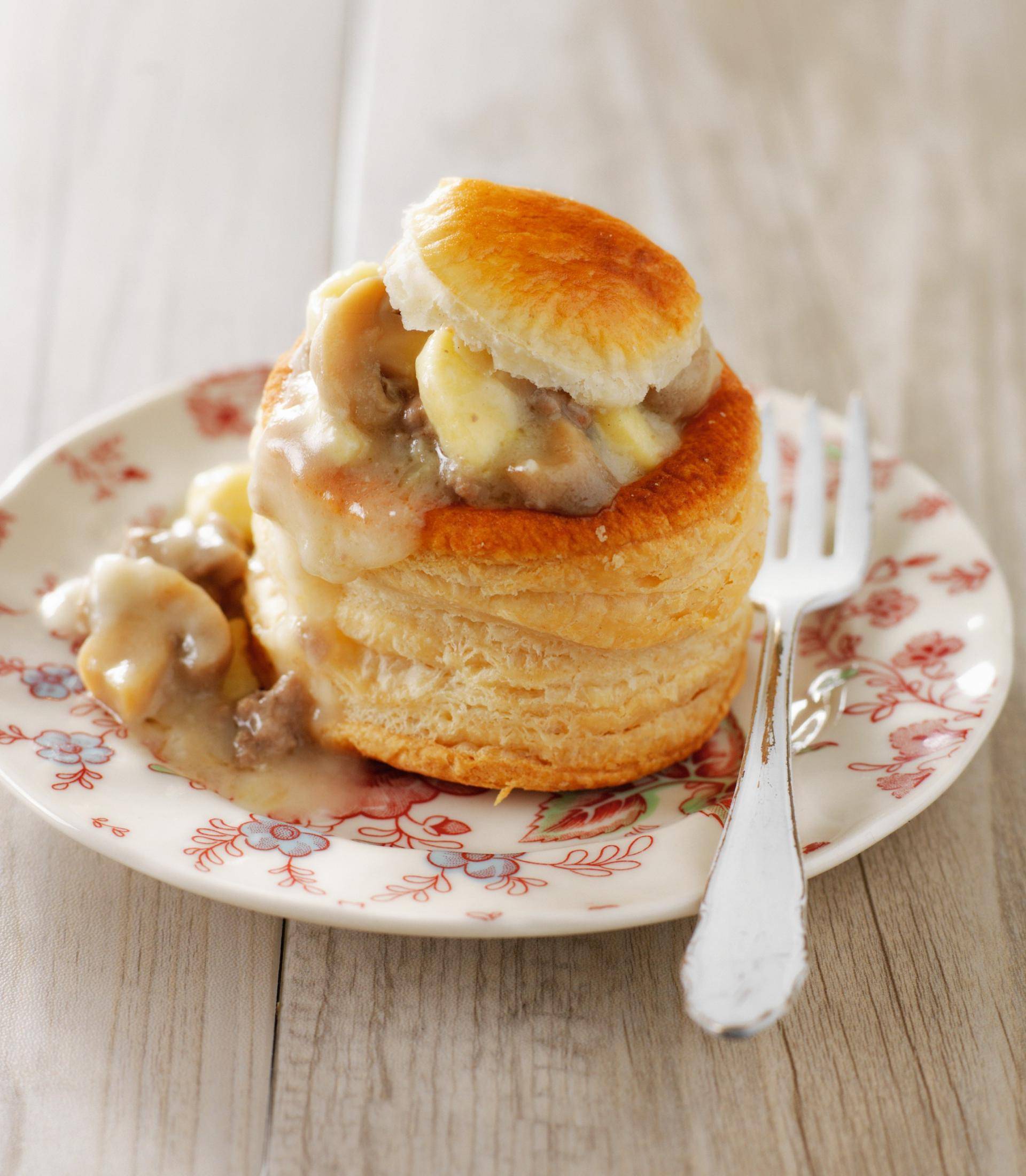Aggiungere le verdure cotte al vapore, lasciandone qualcuna da parte per la decorazione. Chiudere il coperchio e premere "Start". Riempire i vol-au-vent con il composto di besciamella e verdure e guarnire con le verdure avanzate.