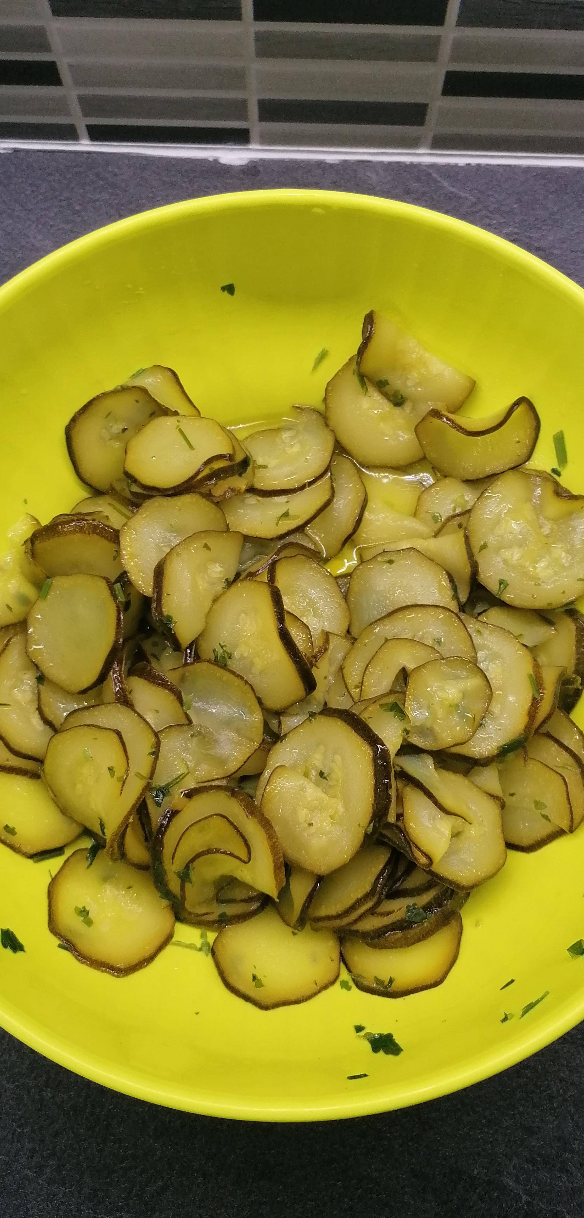 Scolare le zucchine, metterle in una zuppiera, farle raffreddare per almeno 2 ore, condire con un filo d'olio crudo e prezzemolo