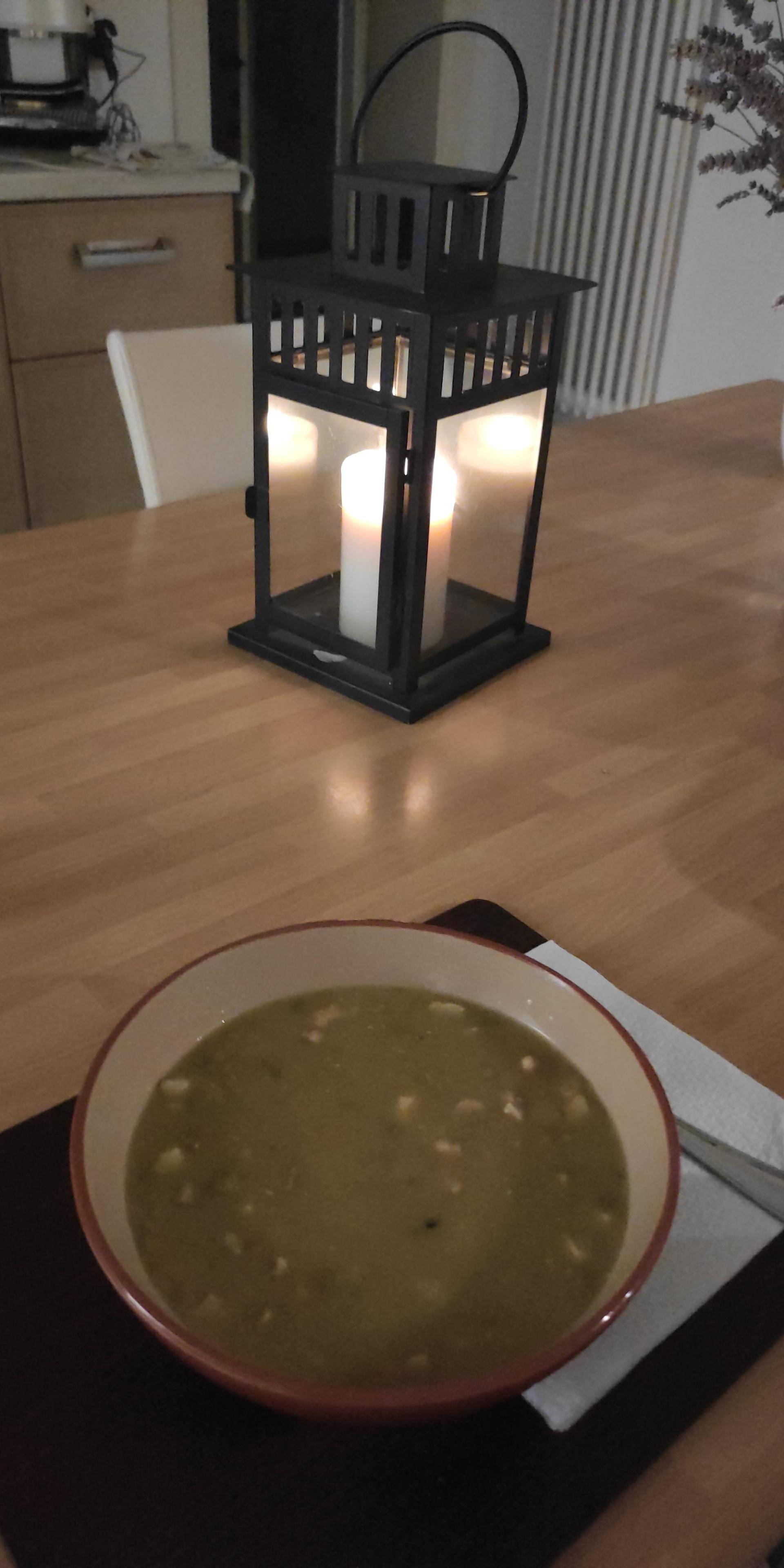 Coprire il tutto con brodo vegetale precedentemente preparato. 2/3 dita sopra il livello dei piselli